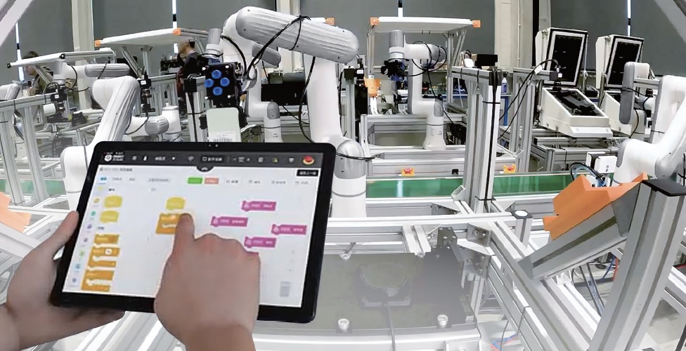 DobotStudio Pro V4に対応し、ブロック(Blockly)による直感的なグラフィカルプログラミングが可能です。 位置決め・速度設定・I/O制御・条件分岐などを「ブロックを並べる」感覚で構築でき、 専門的なコーディング知識がなくても短期間で工程を立ち上げられます。