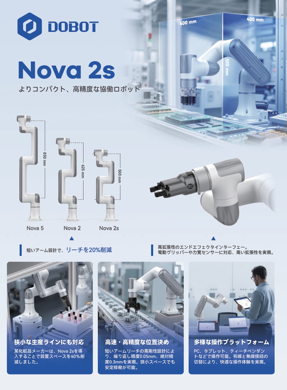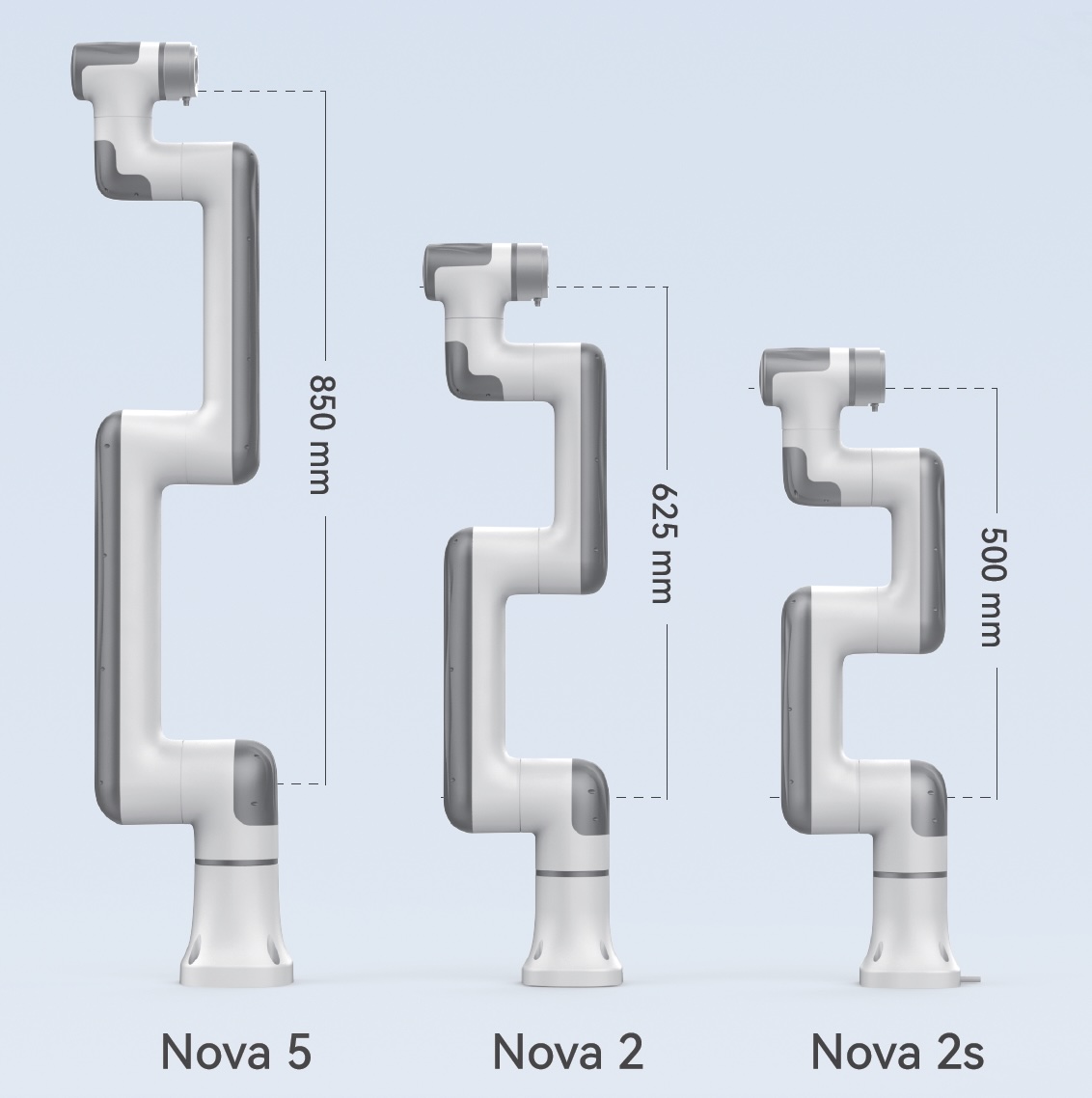 Novaシリーズ産業向けモデルは、可搬重量 2kg(Nova 2S / Nova 2)/ 5kg(Nova 5) の3機種をラインアップ。